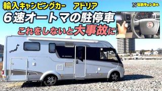 キャンピングカー・SUV人気車種 輸入キャンピングカーアドリア6速オートマの駐停車、これをしないと大事故になります