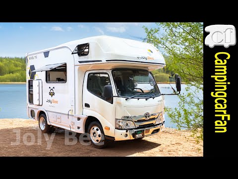 https://campingcarfan.net/reviewjolybee.htmlトヨタカムロードをベース車にするキャブコンキャンピングカー。全長4790mmで5mを切るカムロードキャブコンの中でも特に短いショートカムロードキャブコン。ジョリビーシリーズにはTypeWとTypeXが先に発売されている。 TypeYの特徴は、荷物の量に応じて後部の横置きシングルベッドの高さを上下に変更できる点。家庭用エアコンを標準装備。300Ahリチウムイオンバッテリーをオプションで装備できる。