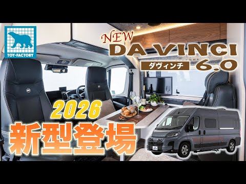 【速報】トイファクトリーの2026年最新モデル|デュカトキャンピングカーの最高峰「ダヴィンチ6.0」が上質さと快適性を向上してフルモデルチェンジで新登場!ジャパンキャンピングカーショー2026で初公開って人気で話題らしいぞ、見逃さないで!!