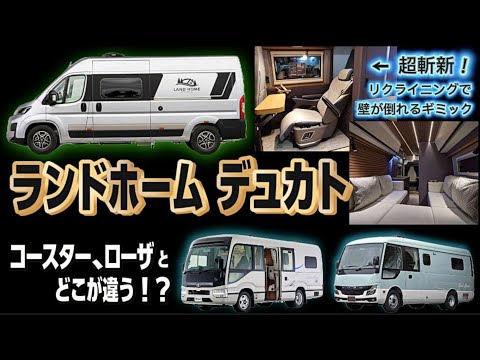 コースターやローザといったバスベースのランドホームとの違いも気になるところ🤔その辺りも踏まえて、皆さまの参考になれば幸いです!ランドホームデュカトはランドホームコースターやローザよりも車体サイズが小さいため、知恵と工夫が満載!そしてギミックも!